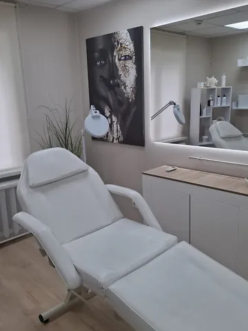 Кажется светлый, полностью оборудованный кабинет для косметолога, стоматолога или другого медицинского специалиста.