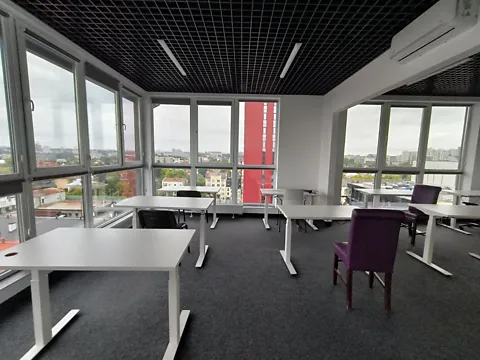 Кажется отдельный офис с террасой в современном офисном центре.