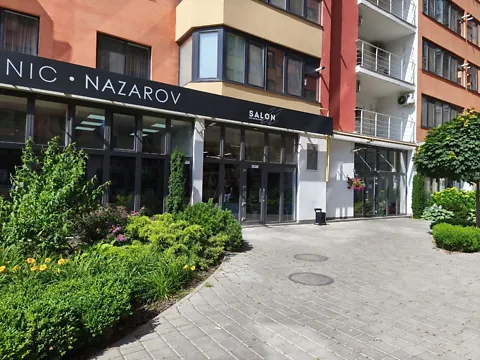 Адреса: ул. Европейская (бывшая Катериненская), угол Базарной, дом 41, Фасад с витражным остеклением.