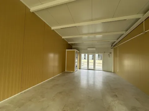 Часть помещения (2) по адресу ул.Трудовая 10, площадью 56, 3 м.кв. Фасад выходит на улицу Трудовую. Отдельный вход. Помещение сплошное, без несущих стен и перегородок. Чистая высота потолка 3.9 м, Ровный пол. Фасад и крыша из сэндвич-панелей, утепленных минватой 15 см.
