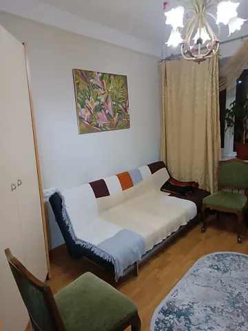 Комната расположена на 3-м этаже из 27, площадью 20 м² светлая, просторная и меблированная (удобный диван, шкаф, стол).
