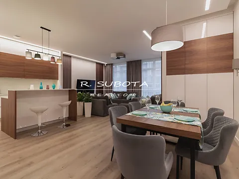 Планировка: три спальни с гардеробами, огромная кухня студия, два санузла. Авторский проект. Выполнен ремонт в лучших европейских материалов.