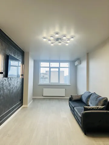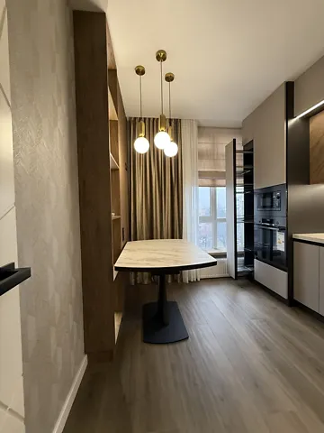 Долгосрочная аренда 1.5 квартиры в ЖК Над Бугом. 1/16 этаж, индивидуальное газовое отопление, кухня студия, гардеробная.