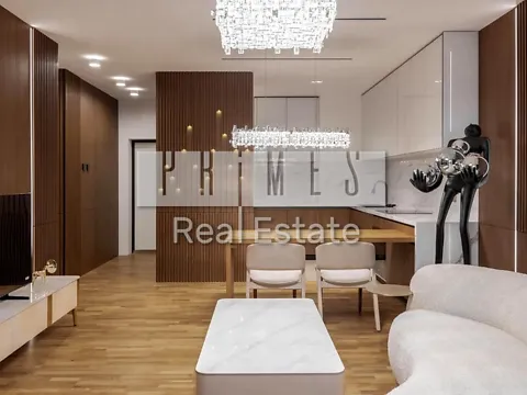 Планировка и пространство: Общая площадь 87 м² Кухня-гостиная 27 м² просторная, светлая, с панорамным видом, диваном, функциональной кухней и подогревом пола 2 спальни обе с двуспальными кроватями, смарт-ТВ, журнальными столиками; одна из спален имеет выход на террасу 2 санузла современные душев.