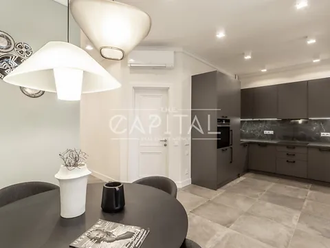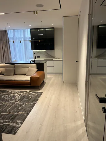 Современная гостиная, отдельная большая кухня, мастер-спальня с отдельной ванной комнатой и гардеробной, детская комната. Стильная мебель и современная бытовая техника.