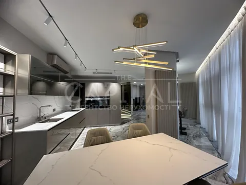 Высококачественный ремонт с использованием дорогих отделных материалов, встроенная кухня со всей бытовой техникой от ведущих производителей, многоуровневое освещение.