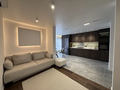 Сдается в аренду современная 1.5-комнатная квартира с отдельной спальней и просторной кухней-гостиной.