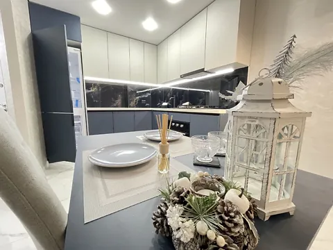 Квартира полностью укомплектована всем необходимым для комфортного проживания. Есть качественная мебель и встроенная техника на кухне: газовая поверхность, духовой шкаф, микроволновая печь.