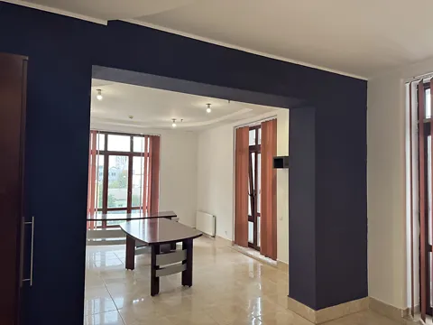 Помещение со свежим ремонтом в спокойных тонах, много света, окна на запад.