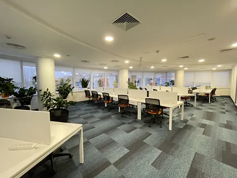 Предлагается просторный меблированный офис площадью 128 м², расположенный на 2-м этаже двухэтажного здания с отдельным входом.