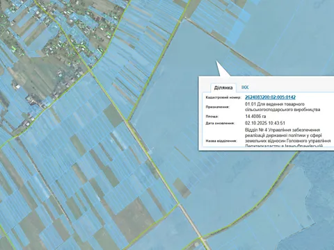 Земельный участок площадью 15,8292 га (пашня) кадастровый номер 5123583000:01:003:0305, который расположен за пределами населенных пунктов на территории Николаевского поселкового совета Березовского района Одесской области.