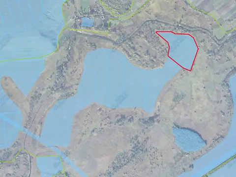 Земельный участок коммунальной собственности из земель водного фонда для рыбохозяйственных нужд, площадью 13,4979 га, кадастровый номер 7120387500:02:001:0970, расположен за пределами населенного пункта села Толстая, Звенигородского района, Черкасской области.