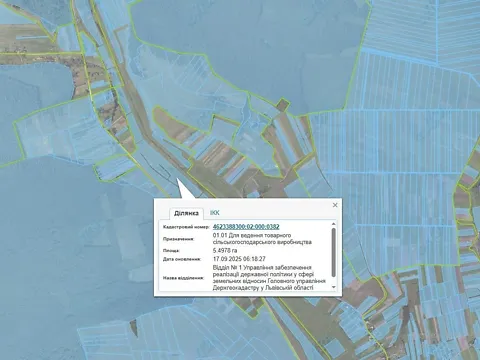 Продажа права аренды (годовой арендной платы) земельного участка сельскохозяйственного назначения, площадью 5,4978 га, кадастровый номер: 4623388300:02:000:0382, расположенный по адресу: Львовская область, Львовский район, за пределами населенного пункта с.