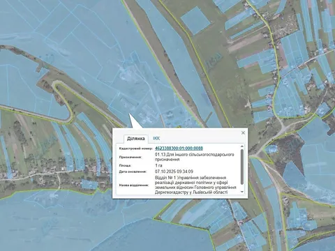 Продажа права аренды (годовой арендной платы) земельного участка сельскохозяйственного назначения, площадью 1,0000 га, кадастровый номер: 4623388300:01:000:0088, расположенный по адресу: Львовская область, Львовский район, за пределами населенного пункта с.