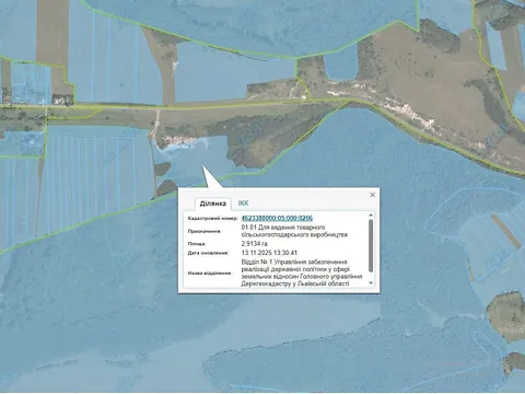 Продажа права аренды (годовой арендной платы) земельного участка сельскохозяйственного назначения, площадью 2,9134 га, кадастровый номер: 4623388000:05:000:0206, расположенный по адресу: Львовская область, Львовский район, за пределами населенного пункта с.