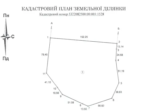 Земельный участок сельскохозяйственного назначения коммунальной собственности площадью 10.7936 га, кадастровый номер 5323281400:00:006:0011, место расположения: Полтавская область, Миргородский район, Миргородская городская территориальная громада.