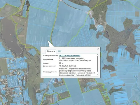 Продажа права аренды (годовой арендной платы) земельного участка сельскохозяйственного назначения, площадью 20,0000 га, кадастровый номер: 4623310100:01:000:0004, расположенный по адресу: Львовская область, Львовский район, г.