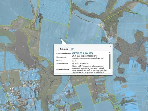 Продажа права аренды (годовой арендной платы) земельного участка сельскохозяйственного назначения, площадью 9,8785 га, кадастровый номер: 4623380400:01:000:0058, расположенный по адресу: Львовская область, Львовский район, за пределами населенного пункта с.
