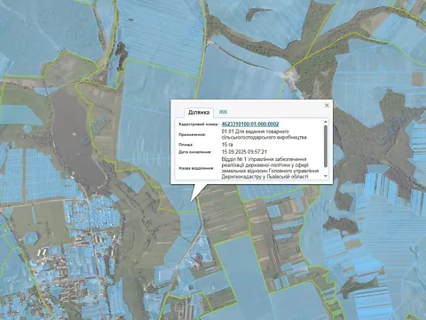 Продажа права аренды земельного участка сельскохозяйственного назначения площадью 15,0462 га, кадастровый номер: 4624883100:10:000:0044, расположенный по адресу: Львовская область, на территории Сокальской городской территориальной общины, за пределами села Ульвивок, категория земель – земли сельско.