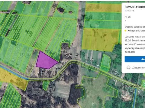 Земельный участок коммунальной собственности сельскохозяйственного назначения площадью 10,0000 га с кадастровым номером 0525681600:07:001:0214, для ведения товарного сельскохозяйственного производства, расположенный за пределами населенного пункта с.