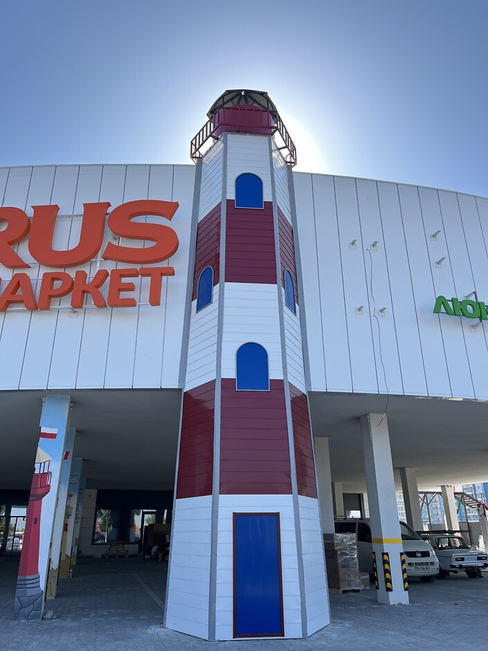 Безпосередньо в будівлю торгового центру вмонтований справжній 12-метровий маяк, який світиться уночі, освітлюючи своїм сяянням у темні часи.