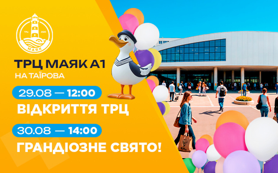 Грандіозне свято на честь відкриття з яскравою шоу-програмою, БЕЗКОШТОВНИМИ фудкортами, інтерактивами, розіграшами 150 подарунків (у тому числі 4 кавомашин від Varus) – відбудеться 30 серпня 2025 року, початок о 14:00. Будьте на хвилі разом з маяком!