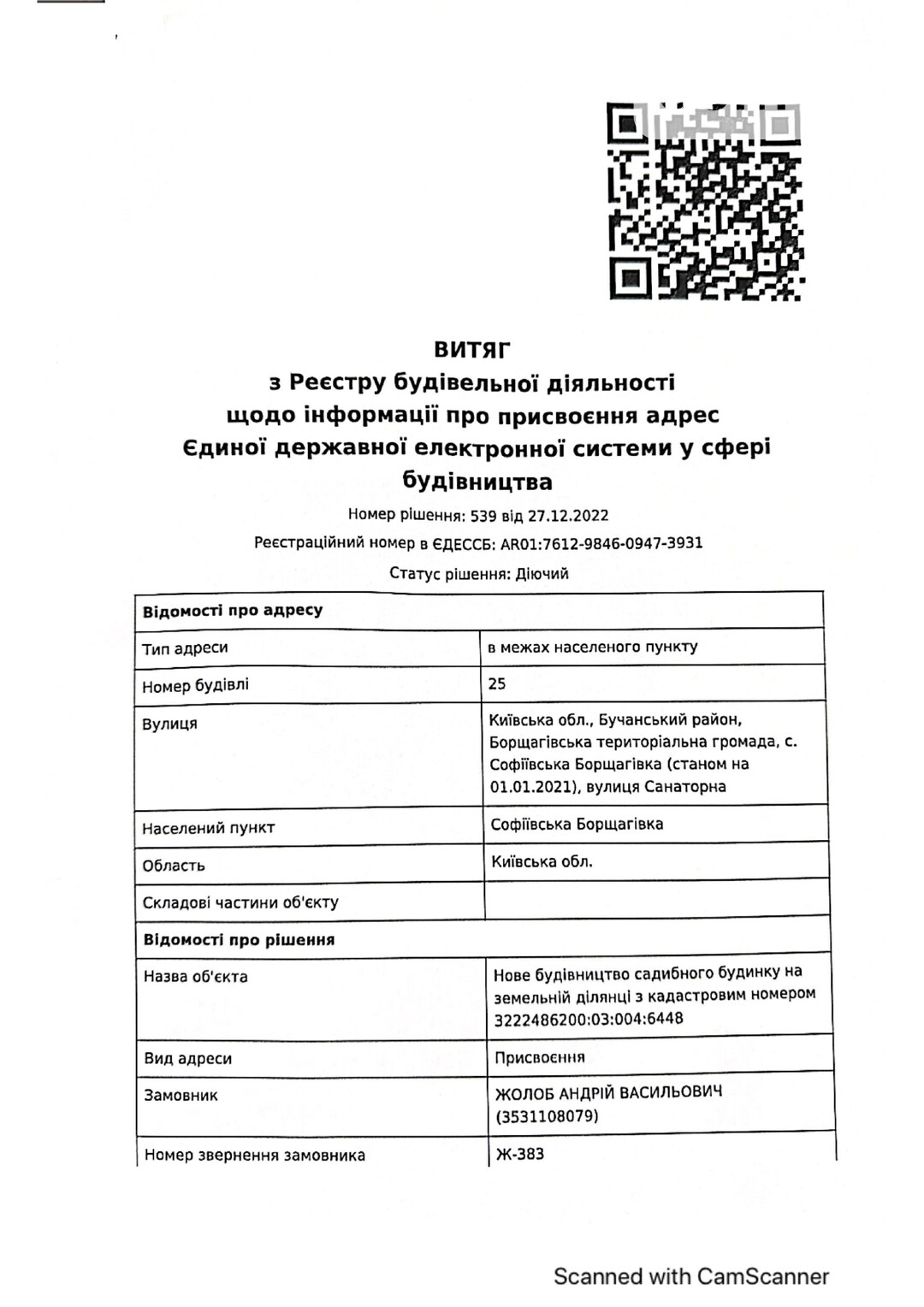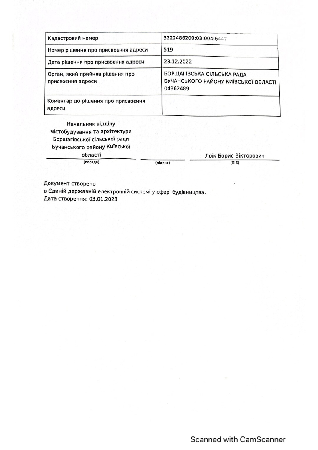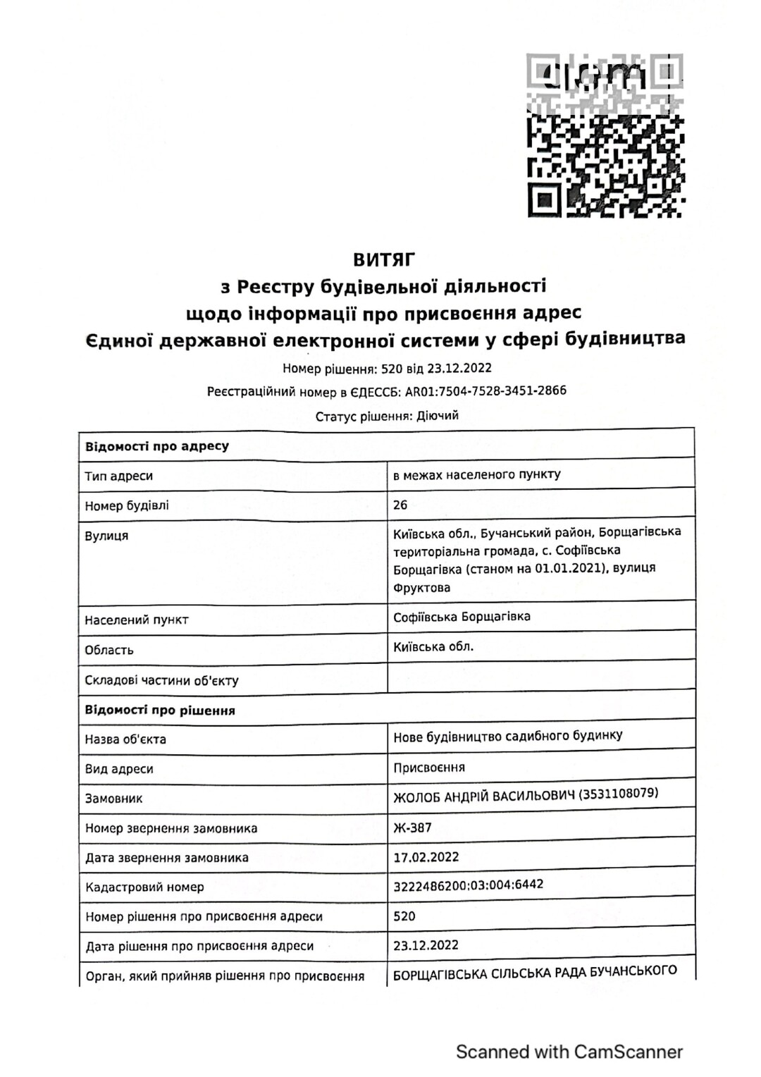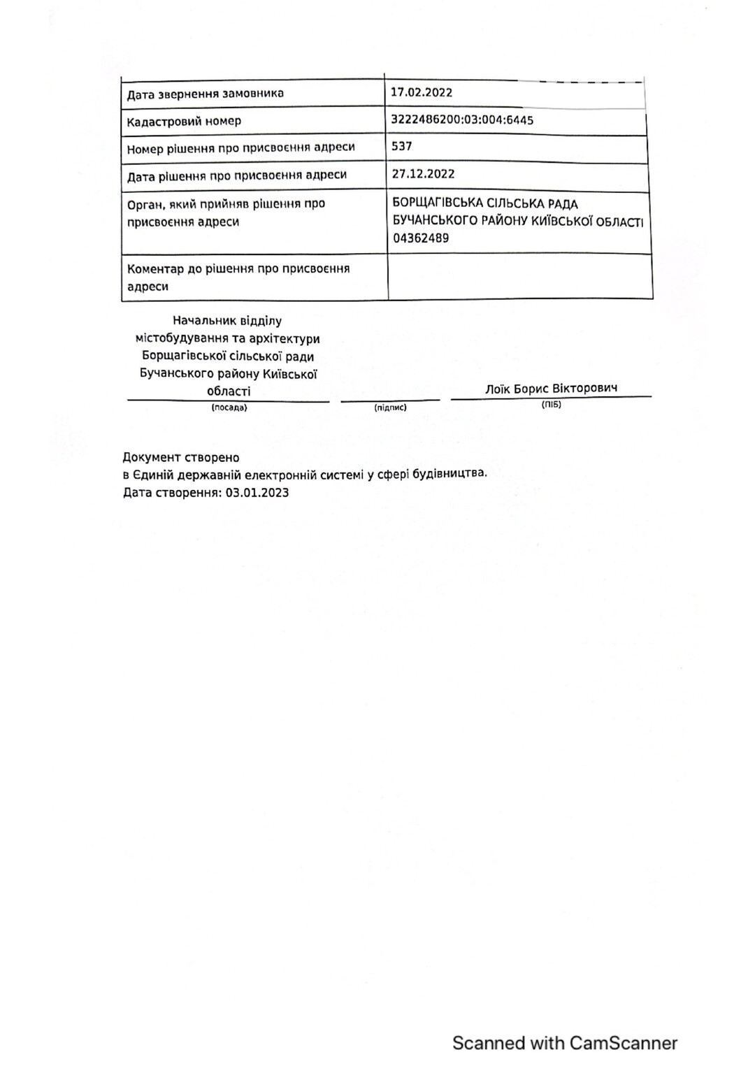 Кадастровый номер 3222486200:03:004:5001 |