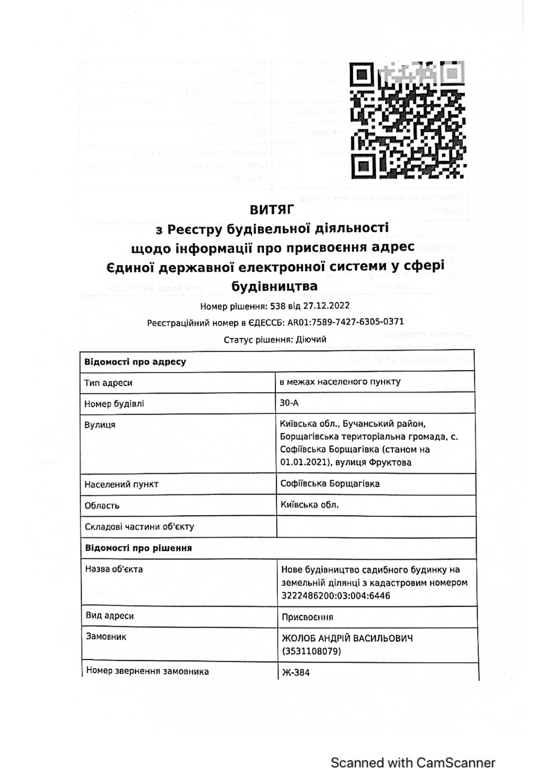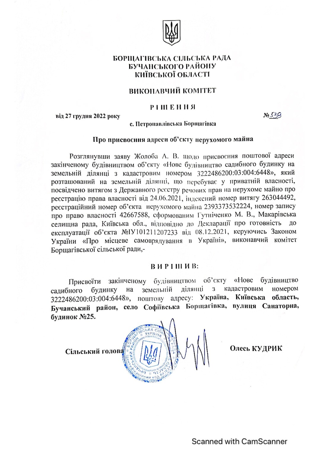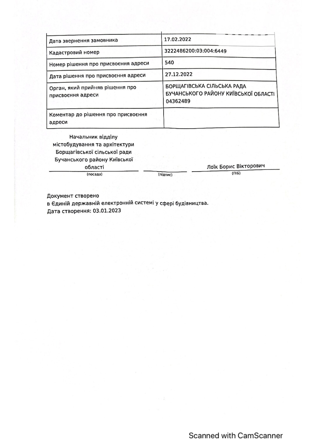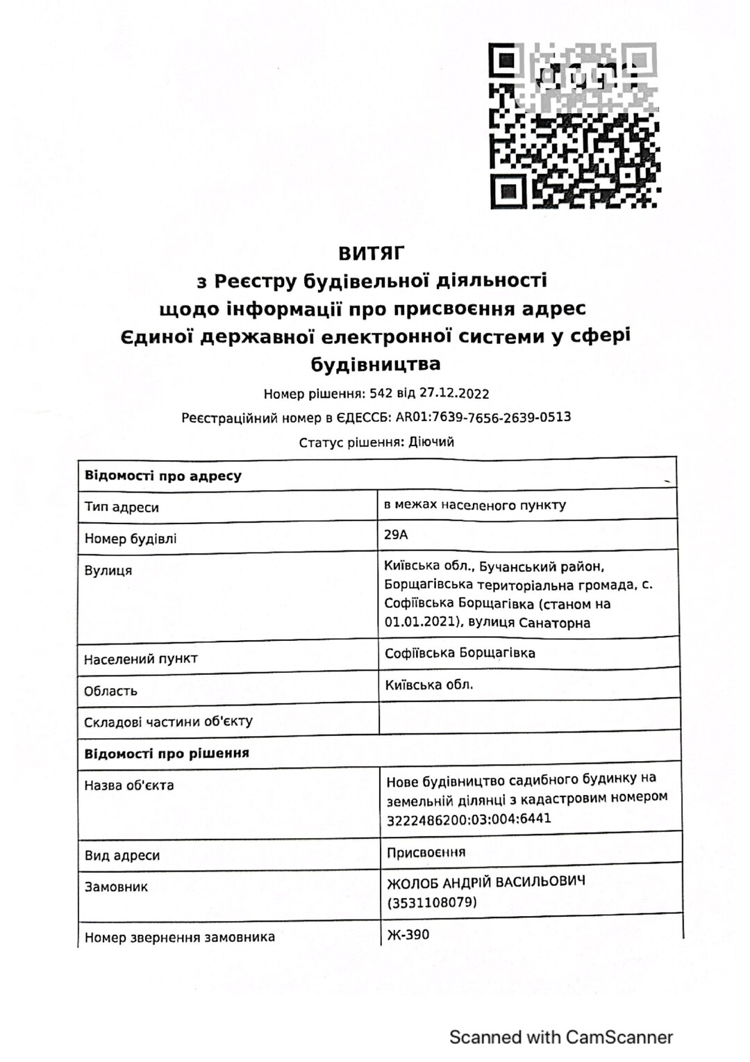 Кадастровый номер 3222486200:03:004:5001 |