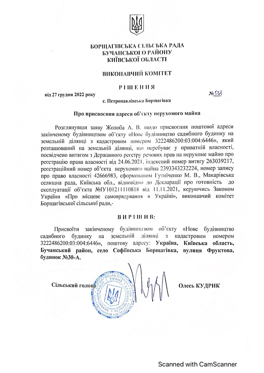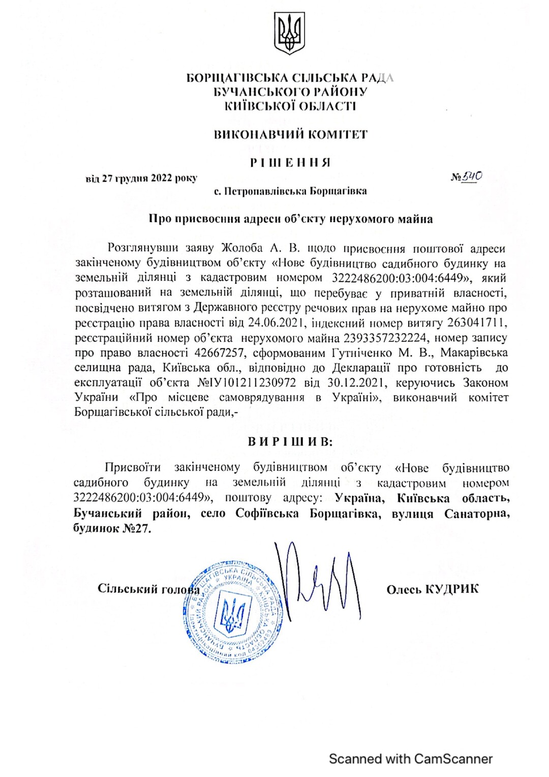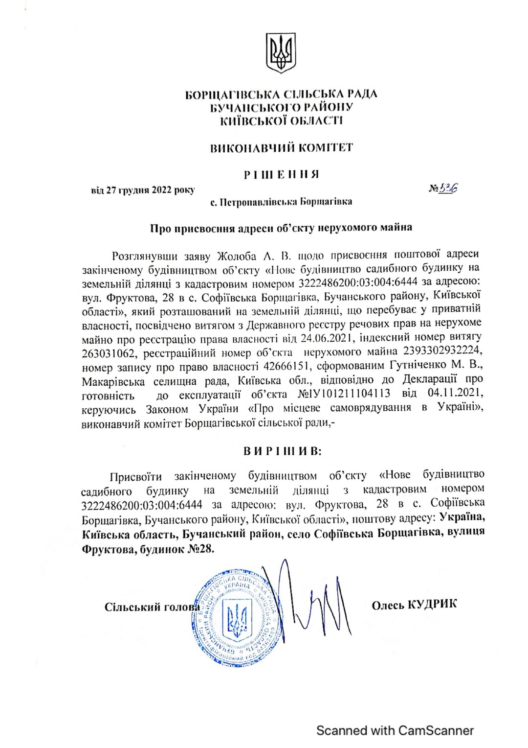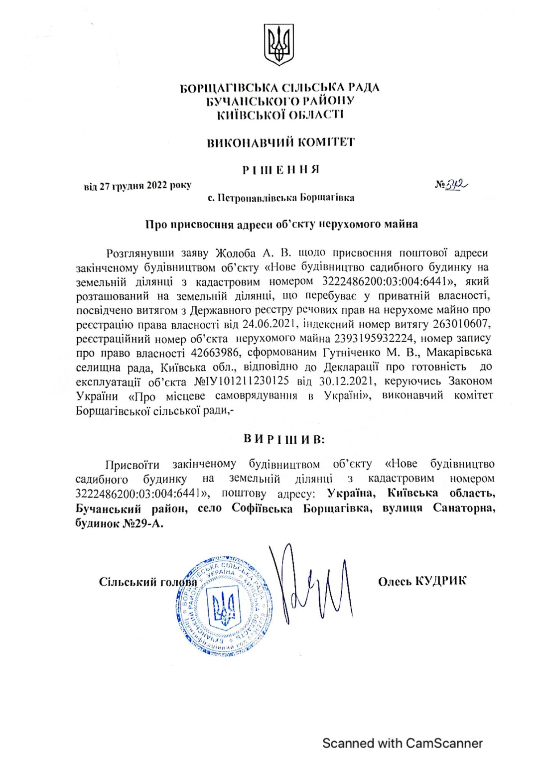 Кадастровый номер 3222486200:03:004:5001 |