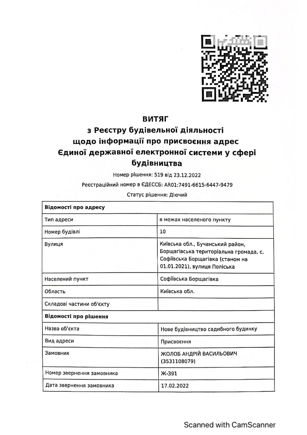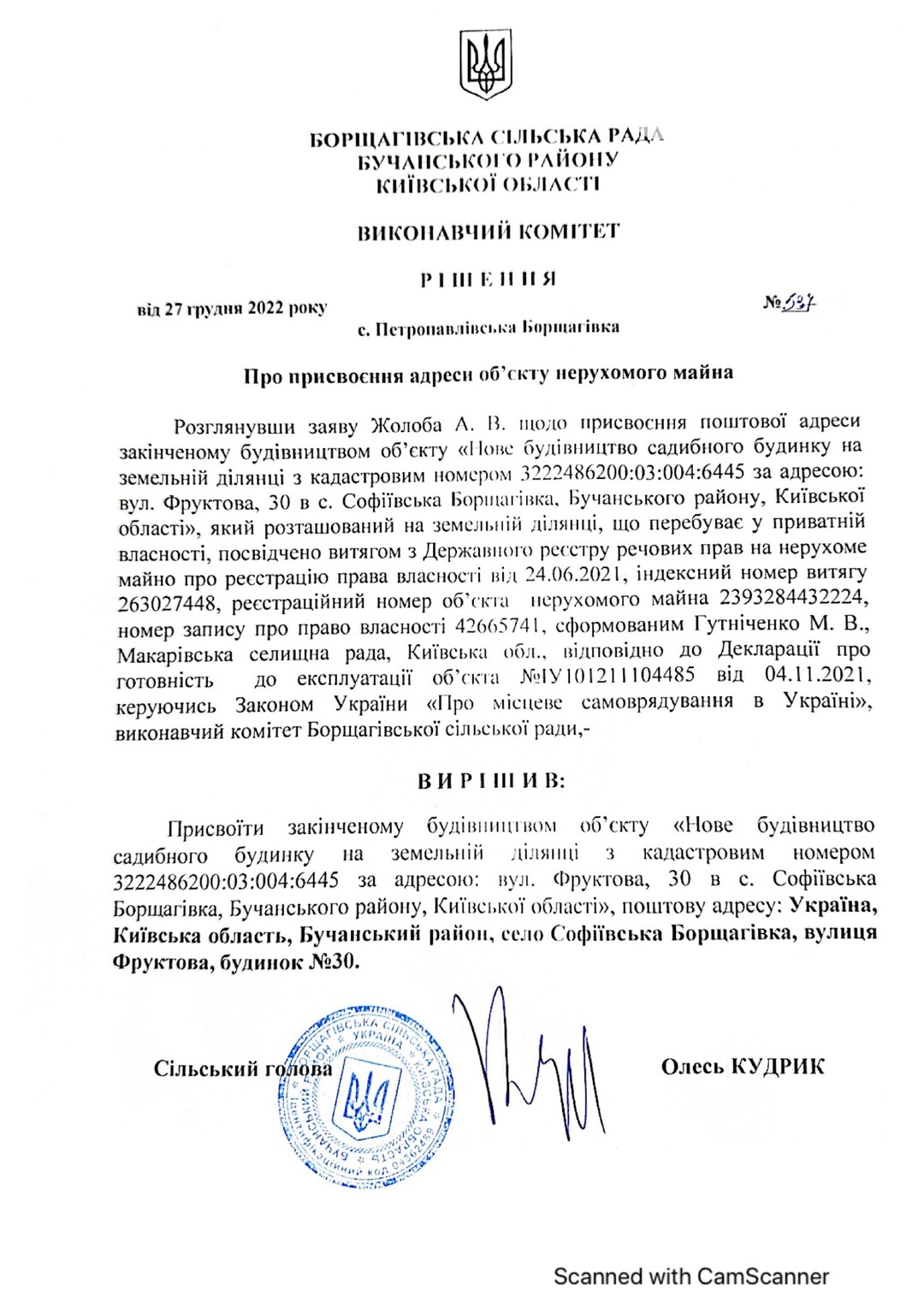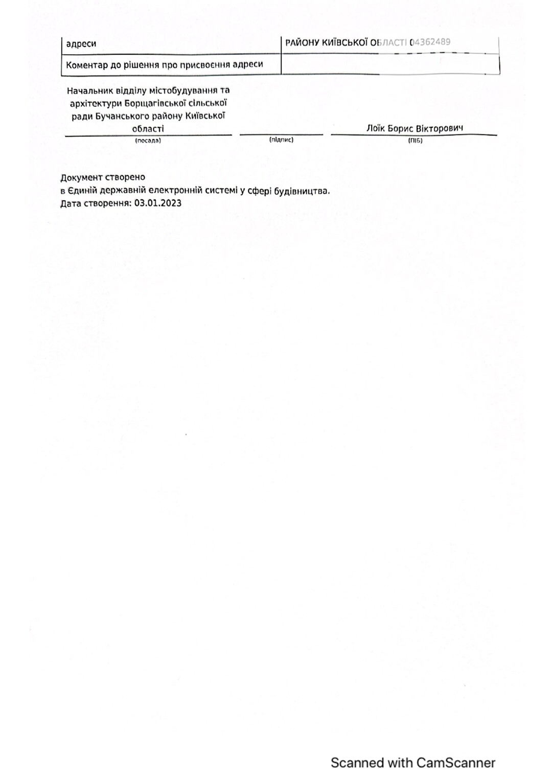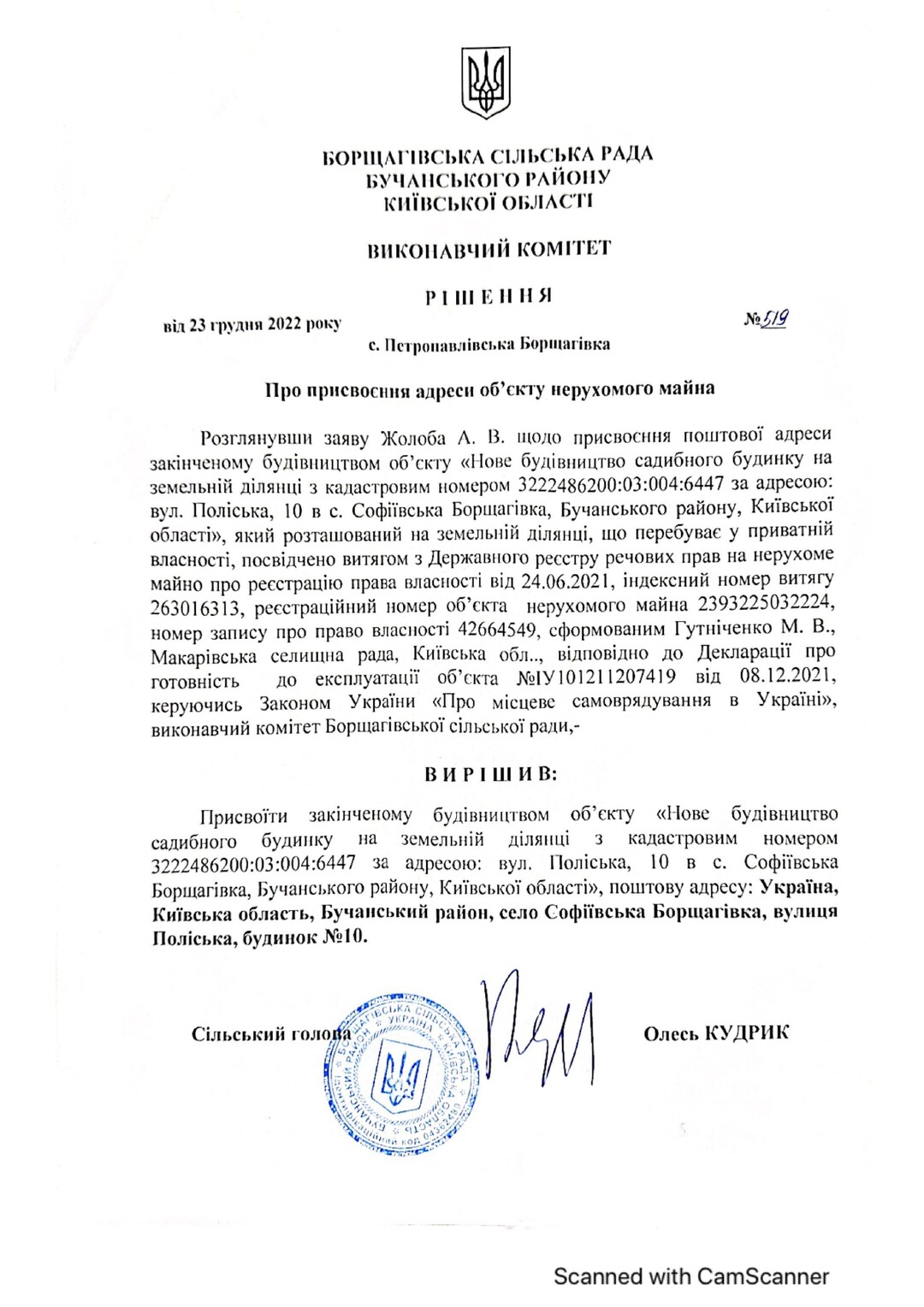 Кадастровый номер 3222486200:03:004:5001 |