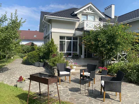 Сдается в посуточную аренду уютный современный дом с красивым зеленым участком. Тихий двор с прекрасным садом, просторная летняя терраса и мангальная зона для отличного времяпровождения с семьей и друзьями. Рядом с домом пляж 200м, река Десна, лес.