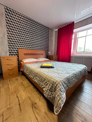 В этой замечательной двухкомнатной квартире с евроремонтом. Вы проведете яркий и незабываемый отдых! В уютной спальне стоит двухместная кровать; большой шкаф-купе и телевизор. темно-лиловом цвете. При заселении Вам будут снабжены необходимые наборы постельного белья и полотенца.