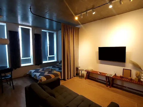 Студия рассчитана на пребывание до 2-х человек. В квартире: WI-FI, ТВ, свежие полотенца, фен, утюг, всегда горячая вода.