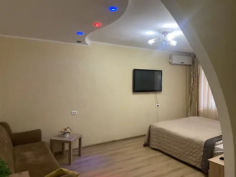 Комфортна компактна студія в тихому спальному районі. Двуспальне ліжко і односпальне крісло, всі необхідні меблі і техніка. Поруч проспект Центральний, супермаркети, парк, ринок "Україна". У нас завжди чисто і затишно.