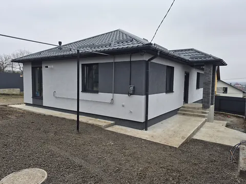 Продается новый одноэтажный дом с современным фасадом. Территория обустроена мостовой, сделан удобный подъезд к дому.