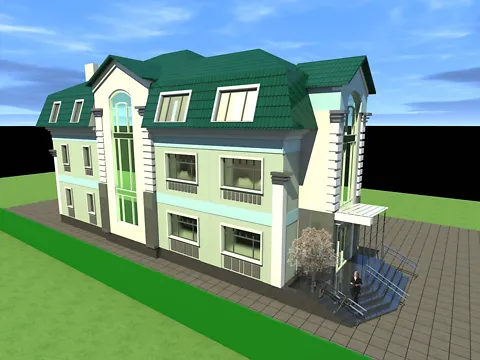 Имеет передний и задний двор.