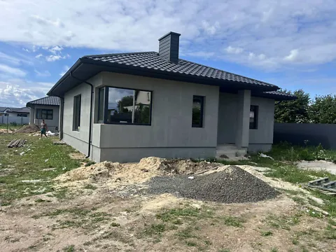 Новопостроенный дом, незавершенный. В селе Боратин. Есть септик 30м3, центральная вода, электричество, газ на дороге. Монолитное перекрытие первого этажа (не дерево). Гранитные подоконники, площадь участка 6 соток. Есть два дома, один 100м2, второй 117м2.