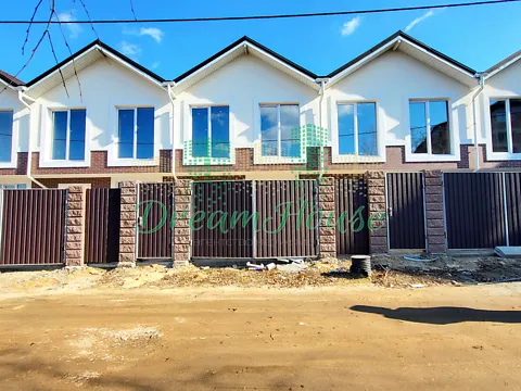 На тихой и спокойной улице расположены современные двухэтажные таунхаусы из красной кирпича внешне утепленный, фасад покрыт декоративной штукатуркой.