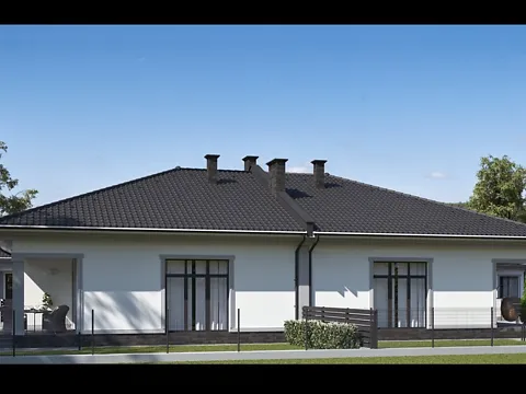 Хорошее функциональное планирование, небольшая площадь в один уровень. Отдельный вход, место для авто. По периметру будет установлен забор.