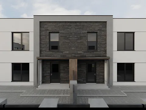 Дуплекс *Двухэтажный *105 м, 2 сотки земли * 3 комнаты, кухня-студия, 2 санузла * Газ, свет 5 кВт, выгребная яма (10 кубов), колодец * Ленточный фундамент 1 м 20 см + литая подушка 40 см, утепление внешнее 10 см пенопласт, забор по периметру (кроме фасада) * Сдача в чистовом варианте: разведено свет.
