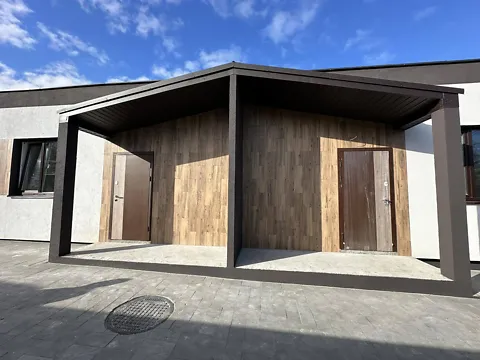 Продажа одноэтажного готового к ремонту таунхаса в центре города Гостомель в удобном и хорошем месте, общая площадь от 52 м2-угольный, собственный задний двор, удобное современное планирование и дизайн, предусматривает либо две отдельные комнаты, либо оставлять кухню гостиную и одну комнату, кухню с.