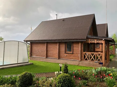 Продам дом в екологічно чистому районі між двома річками Дніпро та старим руслом Росі. Участок 24 сотки. На ньому є окремий будинок, будівля для бані з кімнатою для відпочинку, два гаражі, дровник, теплиця, парник, огород, сад, власний ставок, бесідка в парку, зона для барбекю.
