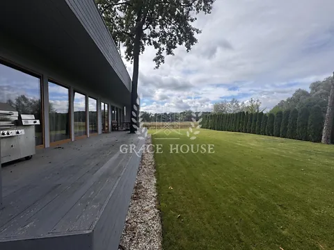 Предлагаем приобрести современный дом в стиле минимализм с выходом к озеру в Конча - Заспе, район хутор Мрыги. Одноэтажный проект из финского бруса, общей площадью 140м. кв, + большая терраса 140м. кв.