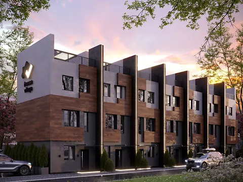 Трёхэтажные Таунхаусы в Киеве от застройщика. Микрорайон Жуляны, домики по 86 м², со своим не большим двориком и собственным паркоместом.