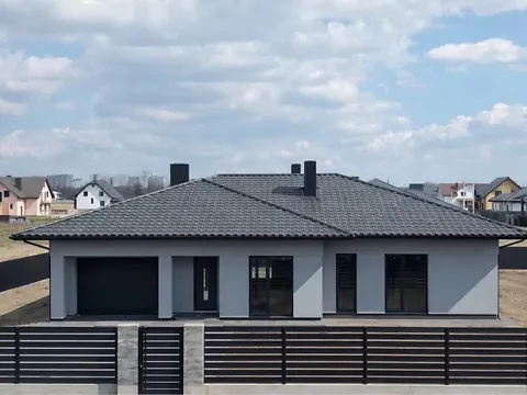 Современный одноэтажный дом с гаражом и большим участком 24 сотки.