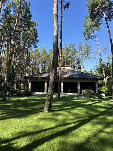 Одноэтажное здание, дом расположен в сосновом лесу возле реки, есть пространство для прогулок, в доме есть спортивный зал с тренажерами TechnoGym, спа-комплекс с сауной, купелью с холодной водой и застекленной террасой с джакузи и мягкой мебелью, удобное помещение для стирки, сушки и глажки белья, в.