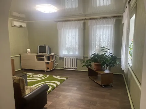 Будинок із червоної цегли, на два господаря. В будинку є ванна з туалетом, кухня, коридор та веранда + ще 4 житлові кімнати. Найбільш зрозуміле пояснення на питання "а як це на два господаря" - це квартира одноповерхова, а через стіну у вас сусіди живуть.