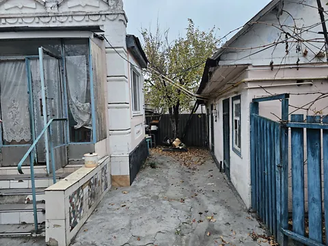 Великий двір, дім 60 м2 (ракушняк обкладений цеглою)5 кімнат, + кухня, кладова, прихожа, поряд ще не великий дім, погріб, гараж шлакоблок, підсобні приміщення, курятник капітальний, колодязь із насосом, в домі газове опалення, меблі залишаються, яблуневий сад