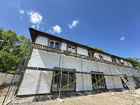 Будинок побудований з цегли, утеплений мінеральною ватою і оздоблений декоративною цеглою.