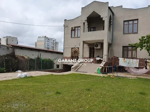 материал ракушняк, фасадный дом, 17 м фасада, 2 въезда на территорию, гараж 24 м2. Состоит из 6 комнат, 2 кухонь и 2 санузлов.